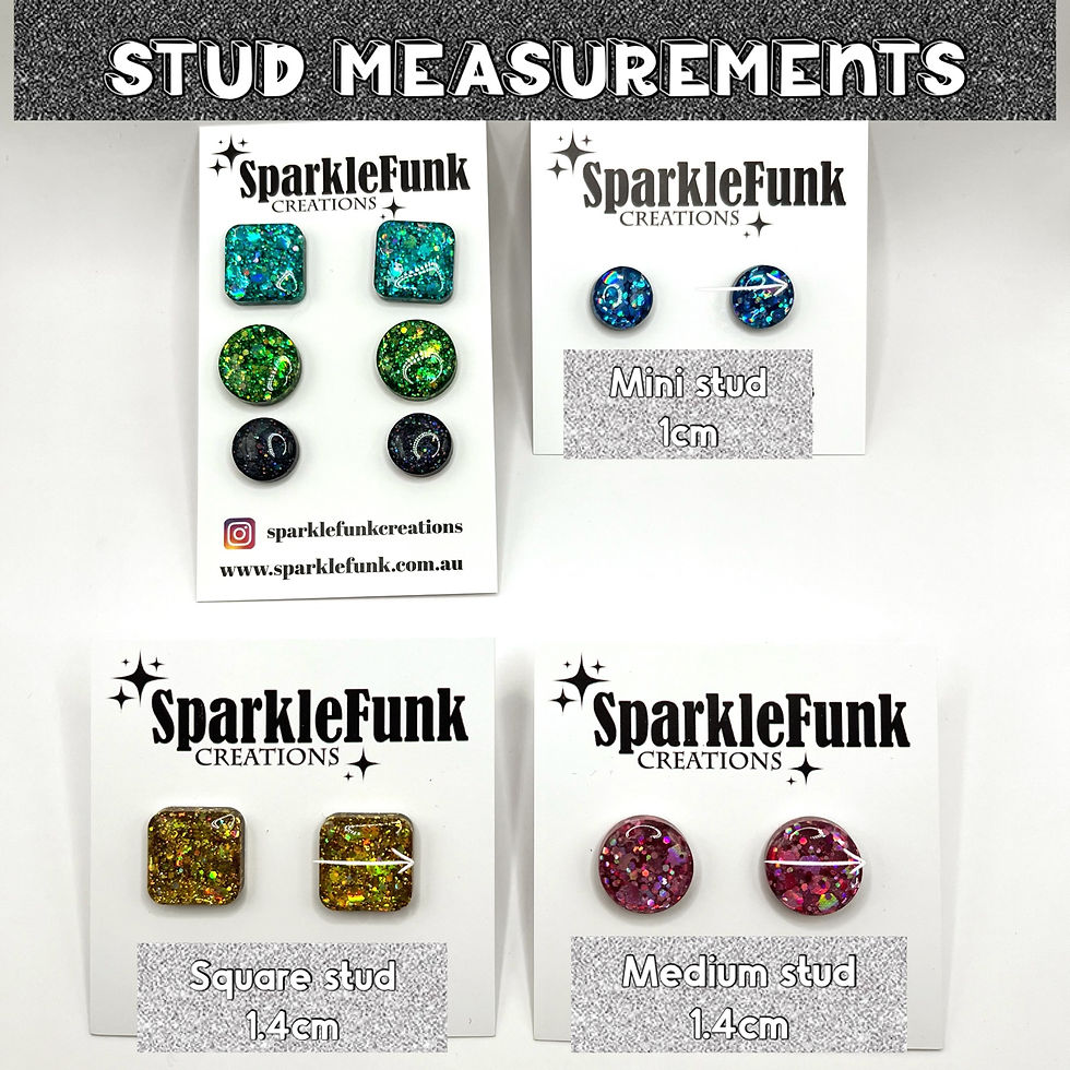 Our first ever range of earrings, the Glitter Bomb range will make you sparkle and shine! These babes come in 14 gorgeous, glittery colours and more designs are being added all the time.
